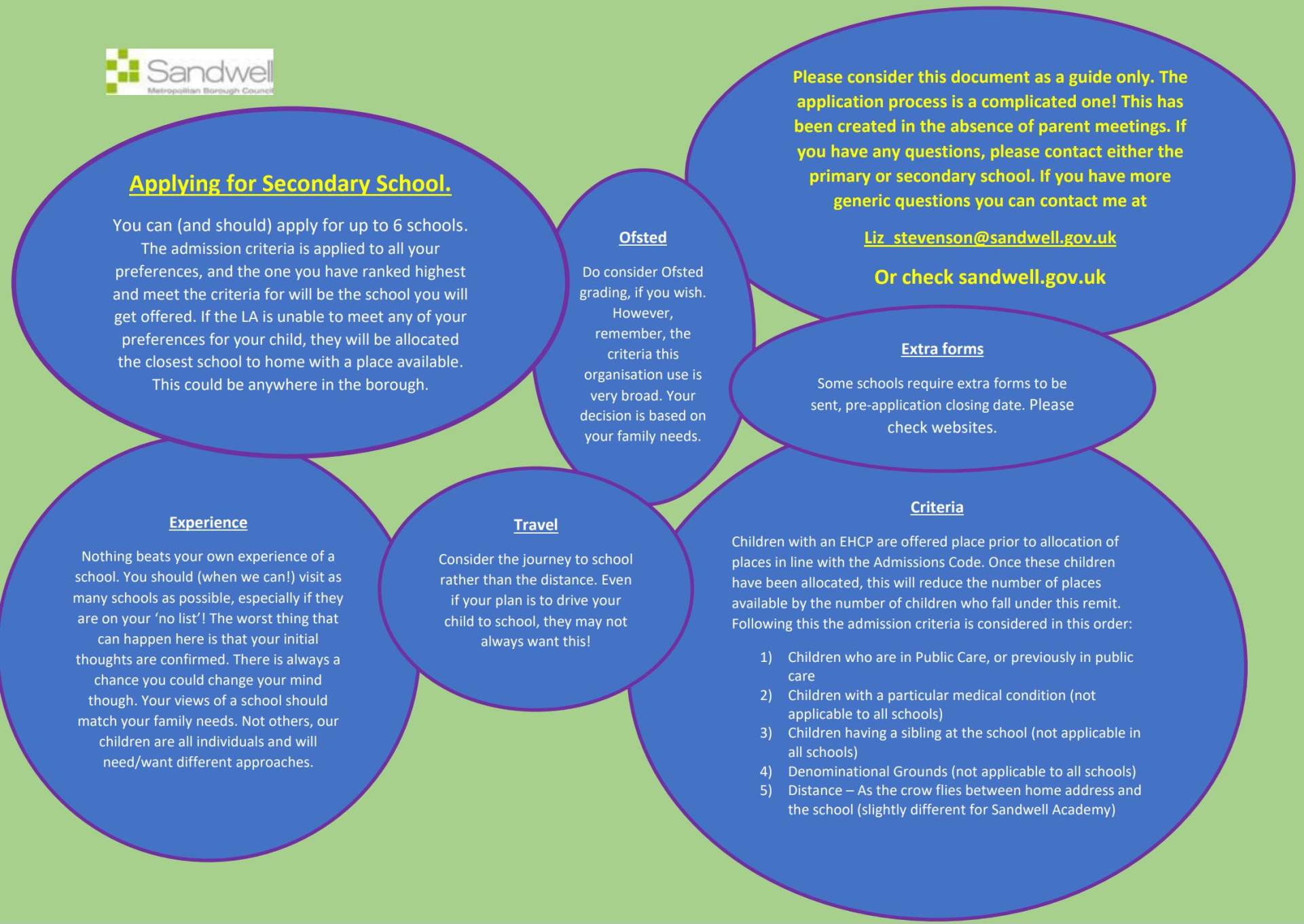 Should you require further assistance please do not hesitate to contact us via email at annual_schooladmissions@sandwell.gov.uk, phone our Parent Support Line -0121 569 6765 or view our parent guide online: http://www.sandwell.gov.uk/schooladmissions