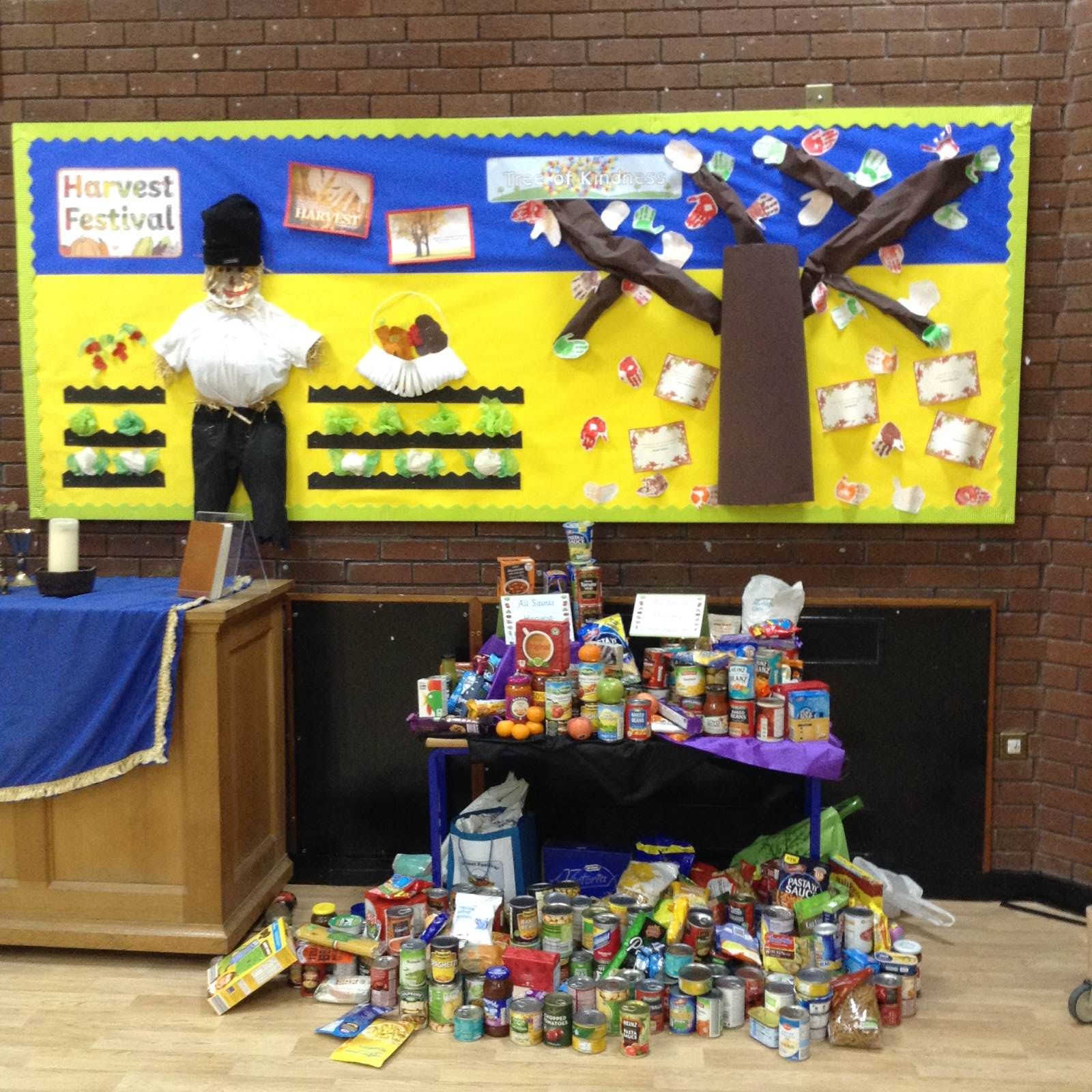 At Harvest Festival we collect food and other essentials for our local food bank.