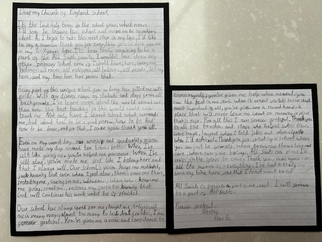 We actively maintain close links with our local church, All Saints. Our parish priest is Revd John Bridge who is also a valuable member of our school community, leading weekly services within school and sitting on our governing body. Our pupils visit the church regularly as part of the RE curriculum and to take part in services to mark important dates in the school and Christian calendar.